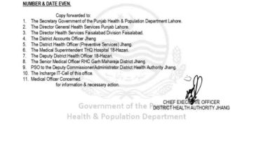*اٹھارہ ہزاری (جاوید اعوان سے)تحصیل ہیڈ کوارٹر ہسپتال اٹھارہ ہزاری میں انتظامی تبدیلی: ایم ایس ناقص کارکردگی پر فارغ*
