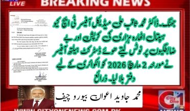 *جھنگ(جاوید اعوان سے)محکمہ صحت میں کرپشن کے خلاف بڑا ایکشن؛ ٹی ایچ کیو اٹھارہ ہزاری کا میڈیکل آفیسر شکنجے میں*